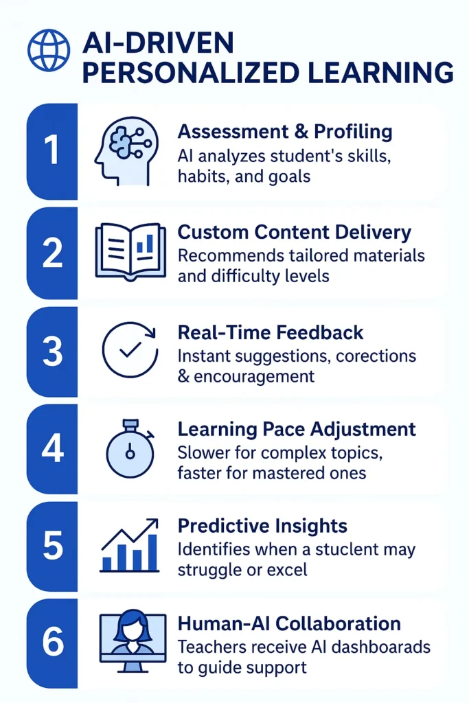 As educational platforms scale globally, AI is helping to bridge gaps in accessibility, language, and pace β offering each student a tailored path to mastery.